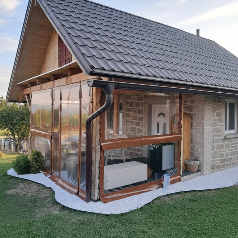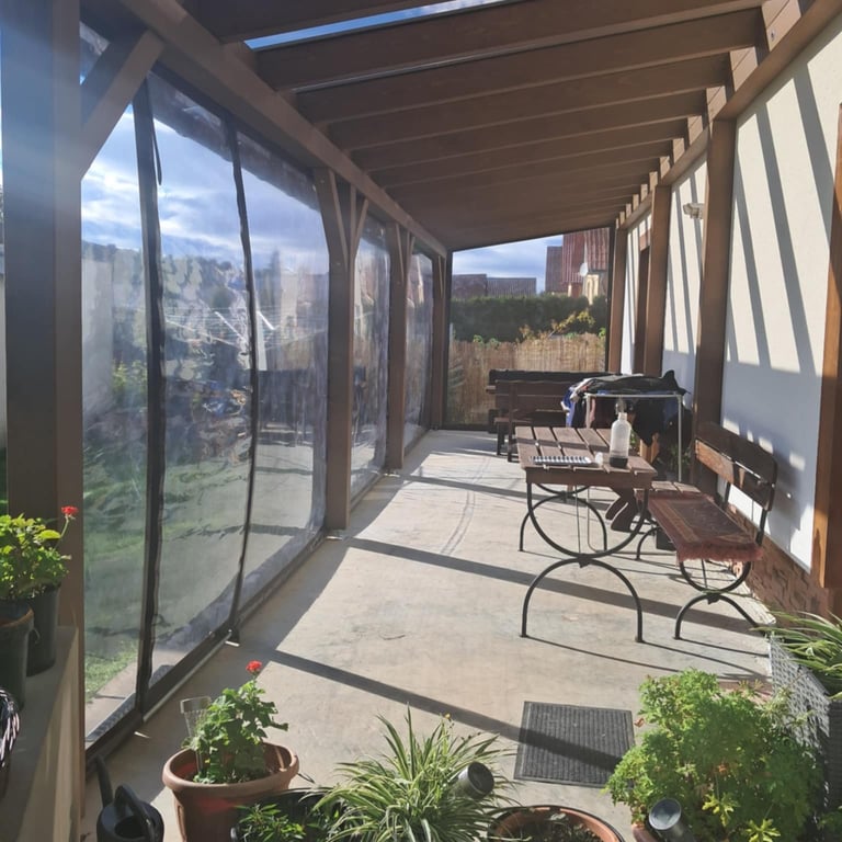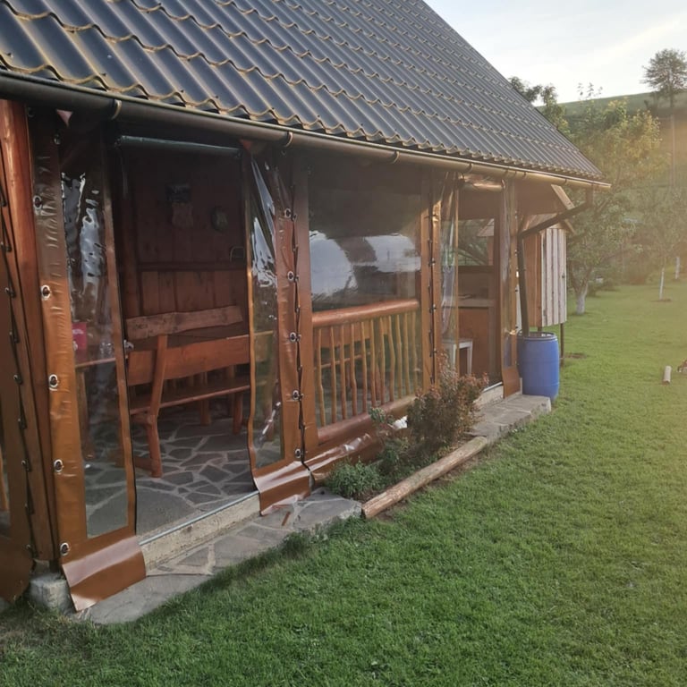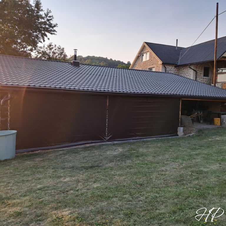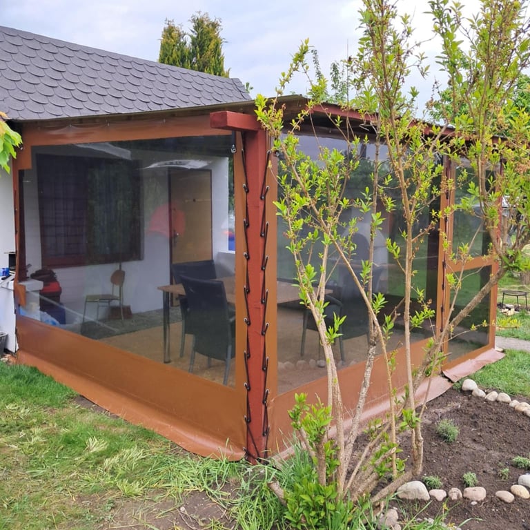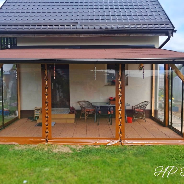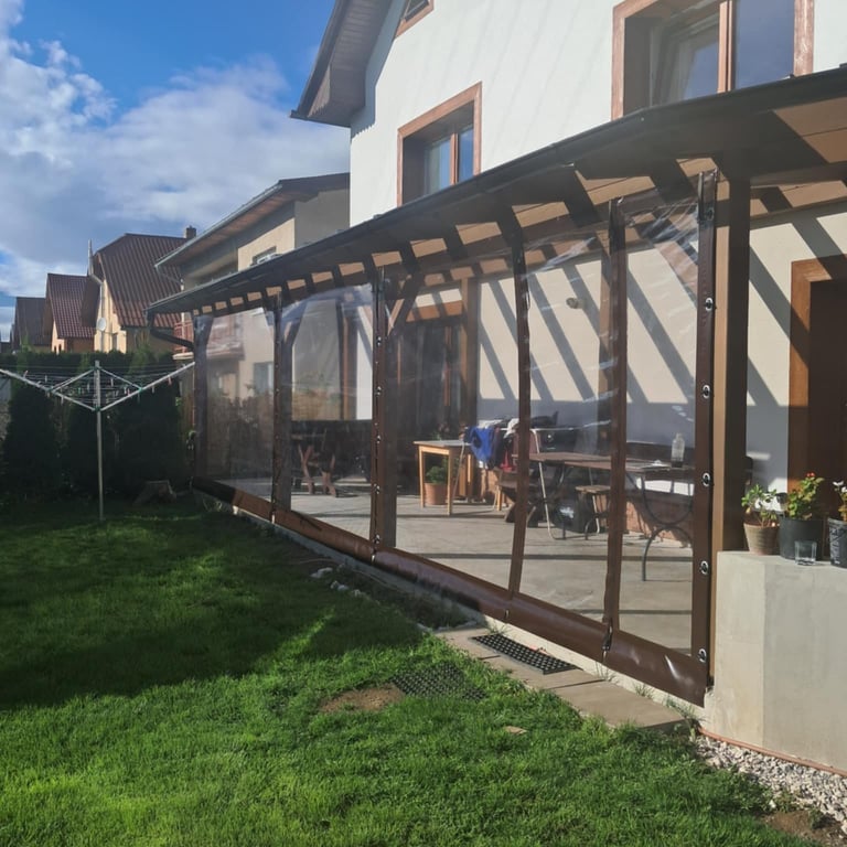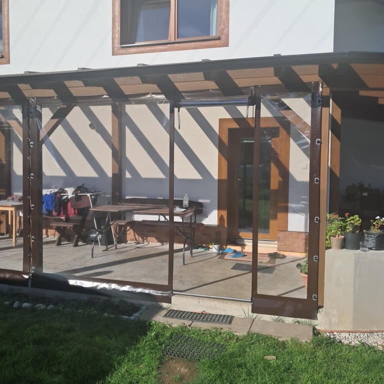 Používame moderné technológie, ako je zapínanie plachiet cez turnikety alebo gumené lano na gombíky, a tiež rolovacie systémy pre maximálne pohodlie a funkčnosť.